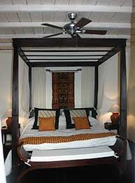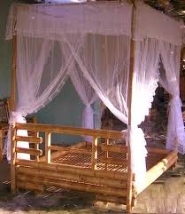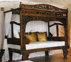 The statement bed which can afford both grandeur and privacy is set to go mainstream in 2018. While four poster beds may have connected posts forming an open top as the bed above shows canopy beds drape fabrics over the top and down the posts. Indonesian four poster bed with square tapered bed posts and railed canopy top in dark teak finish.