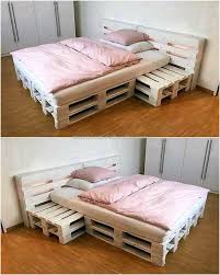 How to make a pallet bed frame. These astonishing ideas for pallets have great styles and it is a safer method for persons as sleeping on the top of bed. Go with these best diy pallet bed frame ideas that are super budget friendly and will be as simple to build as abc.