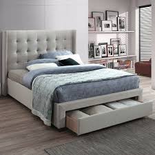 Two drawers and two shelves on the headboard. Storage beds are a fantastic way to get more space without adding extra furniture and a lot of them are so stylishly designed you almost don t notice the drawers are there. High bed frame 2 storage boxes queen 274.