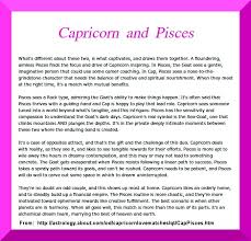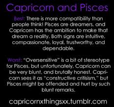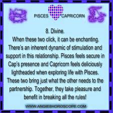 Thus the compatibility of capricorn man and a pisces woman is found to be be gentle tender and a caring relationship. Sexually though the capricorn man and pisces woman in bed is a tremendously pleasurable experience. Capricorn is usually the dominating one while pisces is the sexually submissive one in the bedroom.