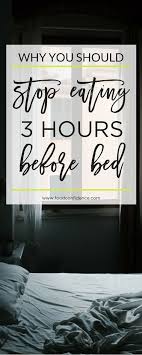 How many hours before bed should you stop eating. And if you are awake till late in the night and 4 to 5 hours have passed after you ate your last big meal then you can have a little snack before bedtime. To ensure your body effectively digests the food you should not go to bed within three hours after having a large meal. So i decided to try and stop eating two hours before bed for a whole month to see what would happen.