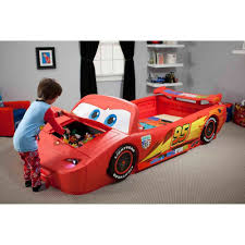 The bed will be a conversation piece for adults and a playground for the kids. This is particularly true in the case of sports cars. The disney pixar cars toddler to twin bed with lights and toy box from delta children is designed to resemble your little one s favorite character lightning mcqueen.