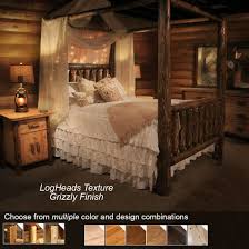 Rustic aspen log canopy bed king size by furniture barn usa. This is the perfect piece to add a rustic twist to any bedroom. Frontier log beds include twins bunks loft beds beds over futons and queen or king all with logs fashioned and hand peeled the old fashioned way.
