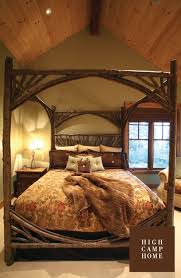 Rustic canopy bed. This bed features large substantial full aspen logs that create the headboard foot board and canopy with half logs for the side rails. Log canopy beds rustic canopy beds if you can t sleep under the stars how about a log canopy bed of aspen cedar or pine. Choose from rustic twin beds twin xl beds full beds queen beds king beds or california king beds and select aspen hickory pine or cedar furniture that has been hand peeled and hand sanded to perfection before assembly the rustic log bed styles we feature include low post canopy bunks futons and daybeds.