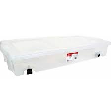 Use this for holiday decorations off season clothes wrapping paper etc. If you re keeping something under a bed style might not be your first concern. Sterilite 19608006 41 quart under bed latch tote storage box containers 6 pack.